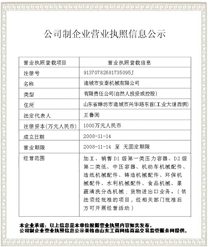 諸城市安泰機(jī)械有限公司有著多年的行業(yè)經(jīng)驗(yàn)沉淀,是一家集設(shè)計(jì)、制造、售后服務(wù)、技術(shù)支持為一體的現(xiàn)代化新型企業(yè)。